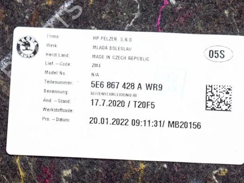 Boot lining SKODA OCTAVIA IV (NX3, NN3, PV3) 1.0 TSI is a unique original used part with the reference 5E6867428A and with the article's id BP27763313I3