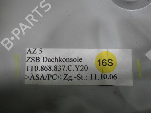 Storage compartment, VW Touran Typ 1T2 from 11.2006. Displacement: 1968. KW: 125. HP: 170. Fuel: DIESEL. Mileage: 258041. First registration: 29.01.2007. Engine code: BMN. Transmission code: JPQ. Reference number: 1T0868837C Y20. Note: VW 1T0868837C Y20 Roof storage compartment, signs of use. Color code: LA7W. Color: SILVER. 1T0868837C Y20