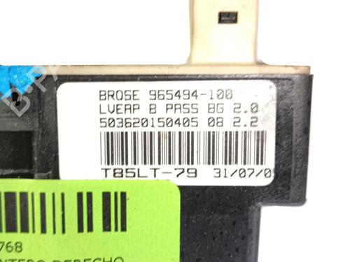 The front right window mechanism is an electromechanical or manual mechanism. Its function is to raise and lower the vehicle's windows, helping to protect passengers from external threats. On the other hand, this mechanism also contributes to the comfort of all passengers, through the option to open it to ensure a more pleasant temperature inside the car. Its location varies depending on the make and model of the car. It is usually located inside the vehicle's door, but in some cases it can be inserted in the vehicle's central panel.