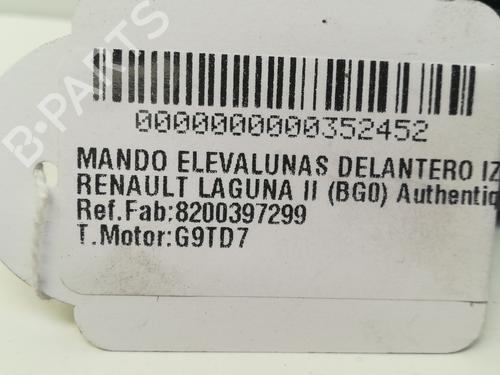 Left front window switch RENAULT LAGUNA II (BG0/1_) is a unique original used part with the reference 8200397299 | and with the article's id BP13313706I27