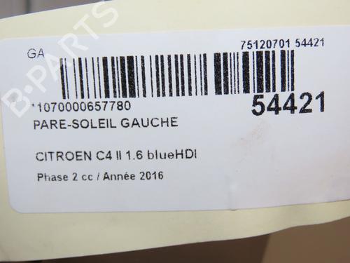 Left sun visor CITROËN C4 II (NC_) 1.6 BlueHDi 100 is a unique original used part with the reference 16128919BJ and with the article's id BP28832369I1