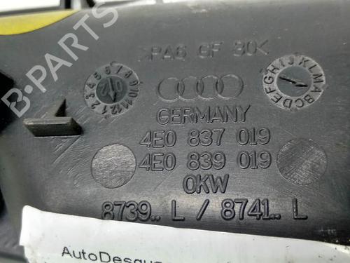 Rear left interior door handle AUDI A8 D3 (4E2, 4E8) 4.2 quattro is a unique original used part with the reference 4E0837019 and with the article's id BP8685250I15