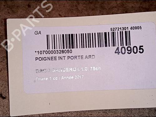 Rear right interior door handle DACIA SANDERO II 1.0 SCe 75 (B8JC, B8JD, B8NC) is a unique original used part with the reference 826721919R and with the article's id BP9618941I16