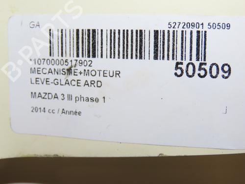 Rear right window mechanism MAZDA 3 (BM, BN) 2.0 is a unique original used part with the reference BHN972590A and with the article's id BP28968919C25