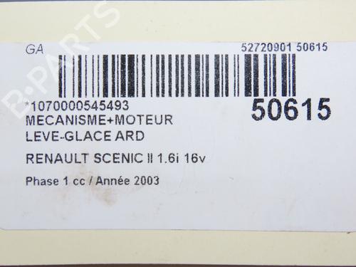 Rear right window mechanism RENAULT SCÉNIC II (JM0/1_) 1.6 (JM0C, JM0J, JM1B) is a unique original used part with the reference 8201010934 and with the article's id BP28802073C25