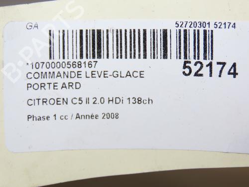 Right rear window switch CITROËN C5 III (RD_) 2.0 HDi (RDRHD8, RDRHDJ, RDRHR8, RDRHRJ) is a unique original used part with the reference 6490F9 and with the article's id BP28831770I28