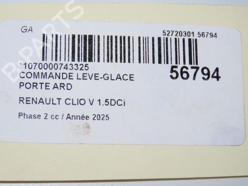 Right rear window switch RENAULT CLIO V (B7_) 1.5 Blue dCi 100 (B7AD) is a unique original used part with the reference 254218388R and with the article's id BP33998862I28