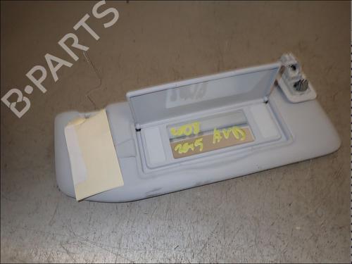 The Sun visor is an automotive component designed with an adjustable hinged flap. Its function is to help shade the eyes of the driver and passengers from the glare of the sun. It is considered an important element for driving safety by aiding in the visibility of the route. This element is located inside the car, above the windscreen in the driver and front passenger seat.