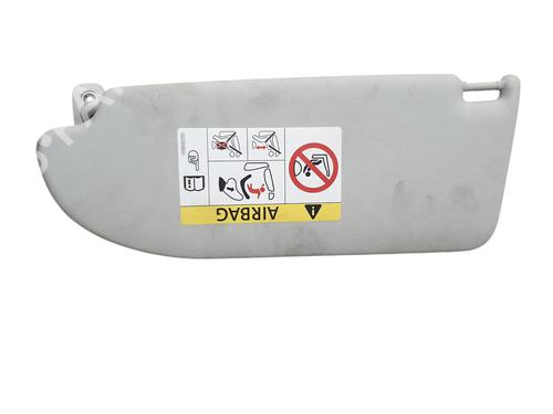 The Sun visor is an automotive component designed with an adjustable hinged flap. Its function is to help shade the eyes of the driver and passengers from the glare of the sun. It is considered an important element for driving safety by aiding in the visibility of the route. This element is located inside the car, above the windscreen in the driver and front passenger seat.