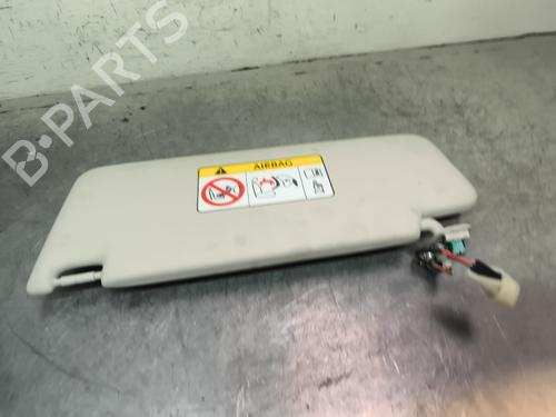The Sun visor is an automotive component designed with an adjustable hinged flap. Its function is to help shade the eyes of the driver and passengers from the glare of the sun. It is considered an important element for driving safety by aiding in the visibility of the route. This element is located inside the car, above the windscreen in the driver and front passenger seat.
