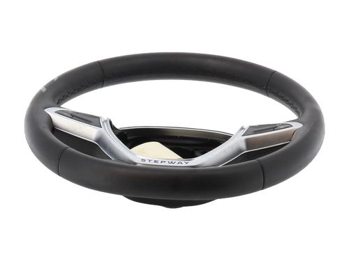 The steering wheel is the interface between the driver and the vehicle's steering. This component includes a circular rim, which is manipulated by its user, where the rotation movement is transformed into interdependent movements in relation to the car's wheels. This component can be covered with different types of fabrics and integrate various automatic features, such as increasing and decreasing the volume of car audio and cruise control. All vehicles include this element in their constitution, located at the front of the car next to the dashboard.