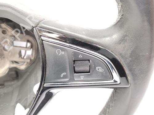 The steering wheel is the interface between the driver and the vehicle's steering. This component includes a circular rim, which is manipulated by its user, where the rotation movement is transformed into interdependent movements in relation to the car's wheels. This component can be covered with different types of fabrics and integrate various automatic features, such as increasing and decreasing the volume of car audio and cruise control. All vehicles include this element in their constitution, located at the front of the car next to the dashboard.