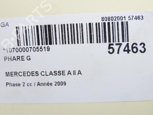 Left headlight MERCEDES-BENZ A-CLASS (W169) A 180 CDI (169.007, 169.307) is a unique original used part with the reference 1698205761 and with the article's id BP32179192C28