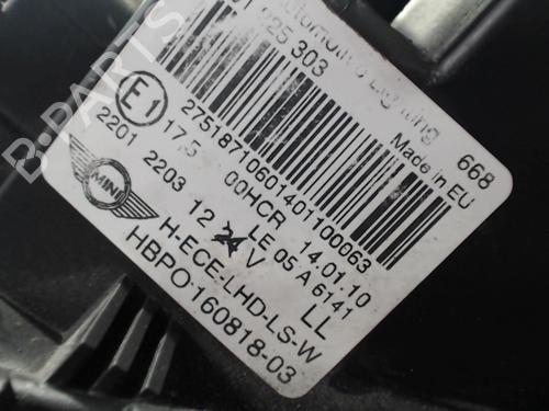 Left headlight MINI MINI (R56) Cooper is a unique original used part with the reference 63122751871 and with the article's id BP32118546C28
