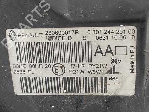 Left headlight RENAULT MEGANE III Hatchback (BZ0/1_, B3_) 1.5 dCi (BZ09, BZ0D, BZ1W, BZ29, BZ14) is a unique original used part with the reference 260600017R 260600017R and with the article's id BP33858399C28