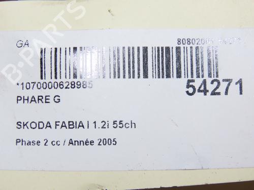 Left headlight SKODA FABIA I (6Y2) 1.2 is a unique original used part with the reference 6Y1941015P and with the article's id BP28969474C28