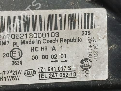 Left headlight SKODA OCTAVIA II (1Z3) 1.6 TDI is a unique original used part with the reference 1Z1941017S | HELLA | 1EL24705213 and with the article's id BP26582690C28