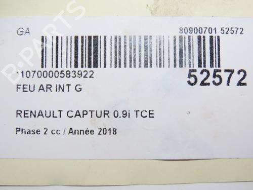 Left tailgate light RENAULT CAPTUR I (J5_, H5_) 0.9 TCe 90 is a unique original used part with the reference 265555726R and with the article's id BP28969508C79
