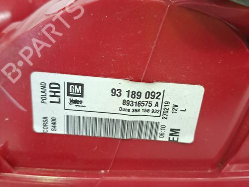 Left taillight OPEL CORSA D (S07) 1.4 (L08, L68) is a unique original used part with the reference 93189092 and with the article's id BP24539218C34