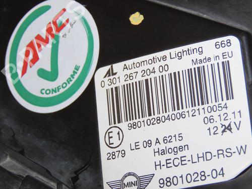Right headlight MINI MINI COUNTRYMAN (R60) Cooper D is a unique original used part with the reference 63129801028 and with the article's id BP30916827C29