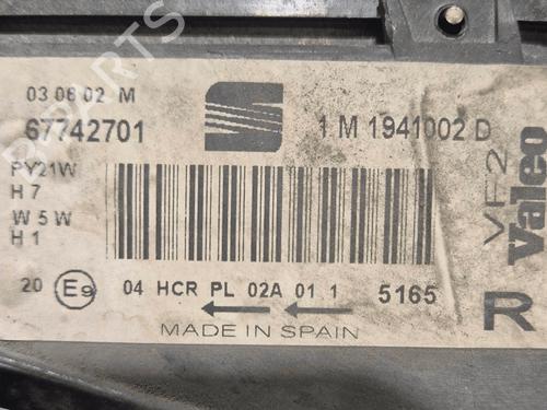 Right headlight SEAT LEON (1M1) 1.9 TDI is a unique original used part with the reference 1M1941016 67742701 1M1941002D 1M1941016 and with the article's id BP33821197C29
