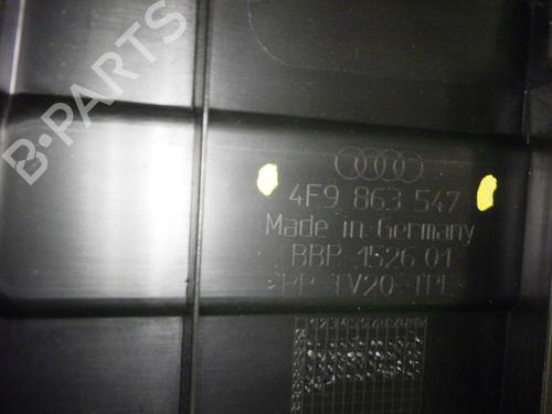 Lining luggage compartment rear bottom, AUDI (NSU) A6 Avant Typ 4F5 from 10.2008. Displacement: 2698. KW: 140. HP: 190. Fuel: DIESEL. Mileage: 315914. First registration: 01.04.2009. Engine code: CANA. Transmission code: JME. Reference number: 4F9863547. Note: AUDI (NSU) 4F9863547. Paint code: LZ9Y. Color: BLACK. 4F9863547