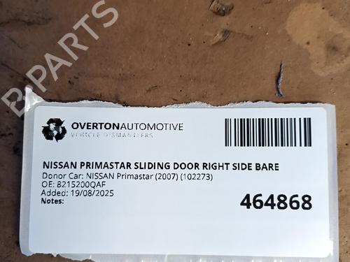 NISSAN PRIMASTAR SLIDING DOOR RIGHT SIDE BARE |