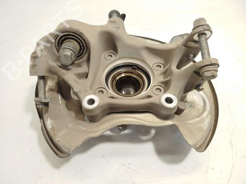 The steering knuckle is the link between the wheel/tire assembly and the vehicle's suspension arms. Its main function is to provide an interface between the four systems responsible for controlling the car. This interface helps these components proceed on a single wheel-tire assembly. This component must adapt to the others that are mounted on it, such as the shock absorber, the steering bar, the wheel hub bearings, the brake caliper, among others. Stub axle models vary depending on the vehicle's complementary suspension type.