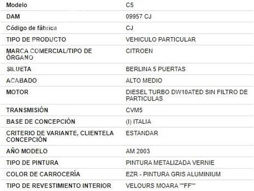 CITROËN C5 I (DC_) 2.0 HDi (DCRHZB, DCRHZE)